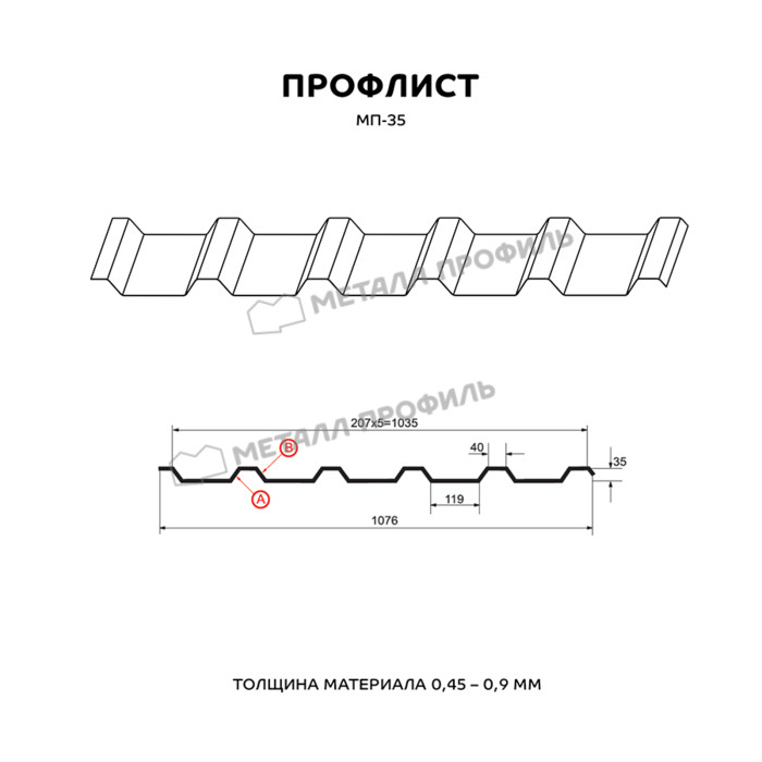 Профлист Металл-Профиль МП-35 Цинк 0.8 мм Бесцветный