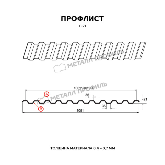 Профлист Металл-Профиль С-21 Полиэстер 0.7 мм RAL 1015 Светлая слоновая кость