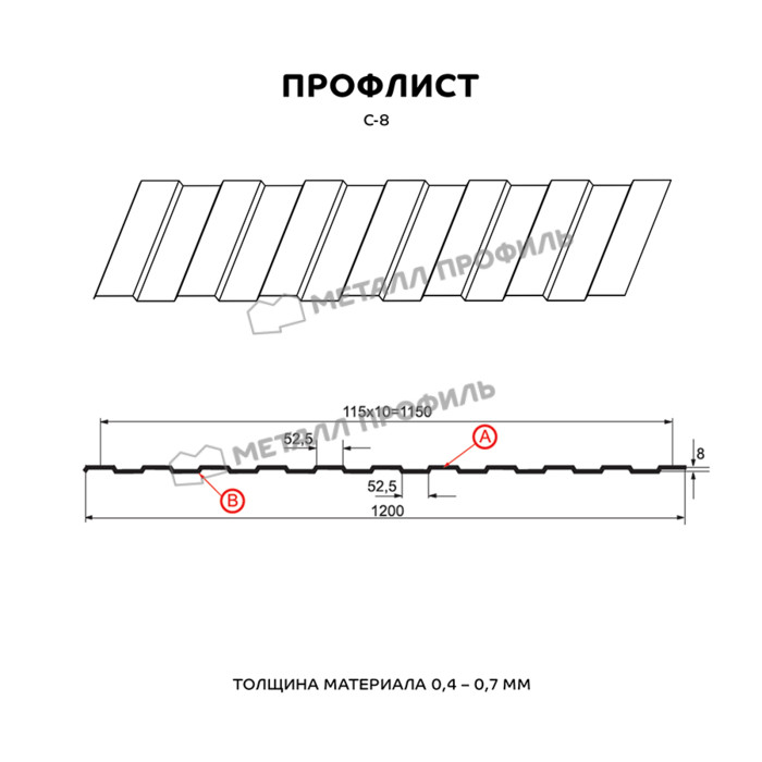 Профлист Металл Профиль С-8 0,45 Полиэстер RAL 9003/9003 Белый | A